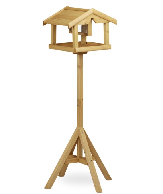 Karmidło wykonane jest z impregnowanego drewna sosnowego, dzięki czemu jest odporne na deszcz, śnieg i wilgoć. Stabilna konstrukcja i 4 nóżki zapewniają, że karmnik stoi pewnie w ogrodzie lub na tarasie.