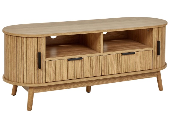 Szafka RTV Beliani Selah 120 cm z Drzwiami Przesuwnymi, Styl Skandynawski, Jasne Drewno