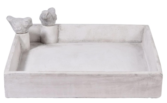 Wykonana z wysokiej jakości materiału (solidna konstrukcja o wyglądzie ręcznie robionej ceramiki/cementu), misa charakteryzuje się trwałością i estetycznym, białym wykończeniem. Jej kwadratowy kształt (29 x 29 cm) nadaje jej nowoczesnego charakteru, a dwa urocze, dekoracyjne ptaszki siedzące na krawędzi dodają sielskiego uroku.